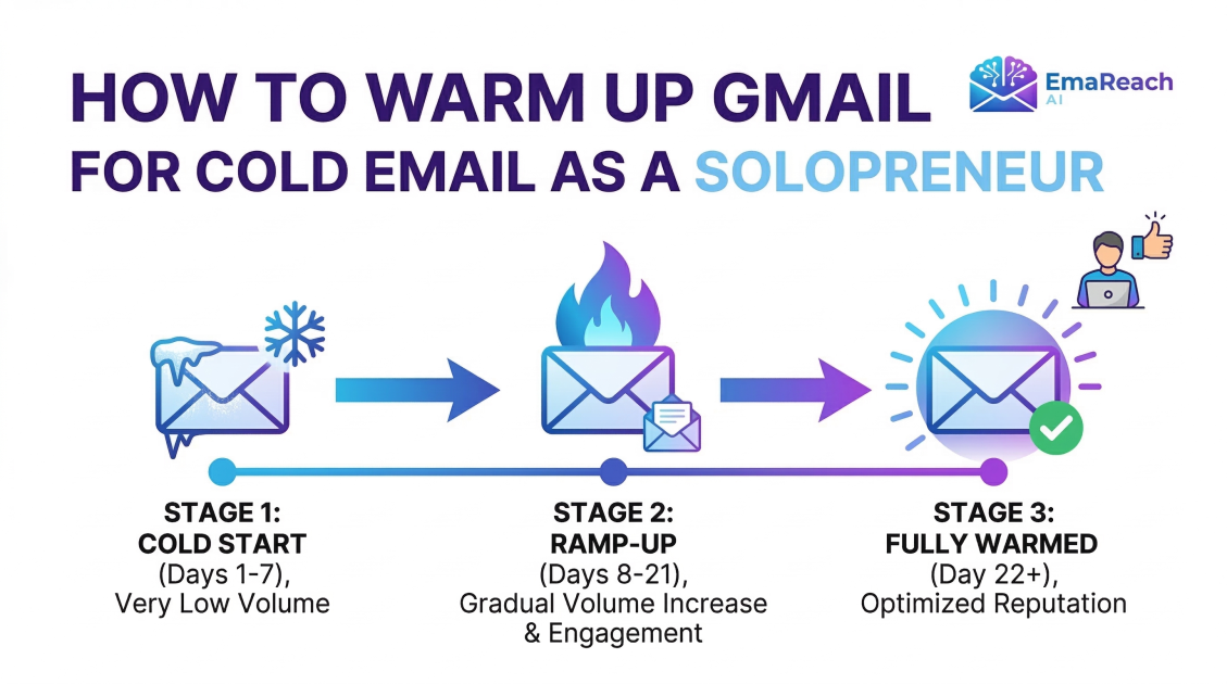 As a solopreneur, you likely aren't sending millions of emails, but even a small batch of cold emails can trigger red flags if your account has no history. A fresh account is a 'cold' account. Warming it up proves to Google that you are a real human engaging in genuine conversations.