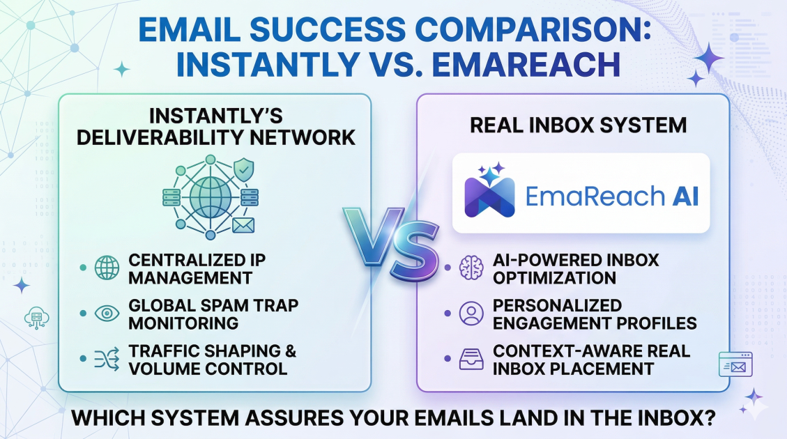 Two major philosophies have emerged in this space. On one side, we have the aggregate power of a massive user base leveraged through a shared network. On the other, we have a focused, high-precision approach designed to mimic organic human behavior at every layer. This article explores the nuances between Instantly’s Deliverability Network and EmaReach’s Real Inbox System to help you determine which architecture is best suited for your long-term growth.