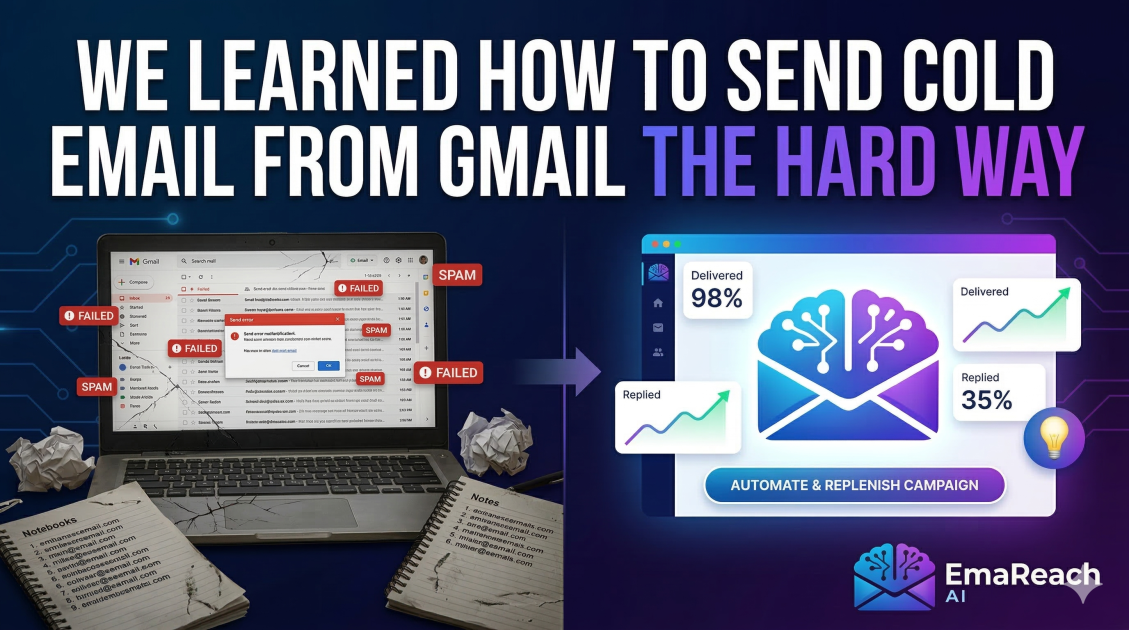 We learned how to send cold email from Gmail the hard way. This is the story of our failures, the technical wall we hit, and the precise strategy we used to rebuild our reputation and turn Gmail into a high-performance outreach engine without getting banned.